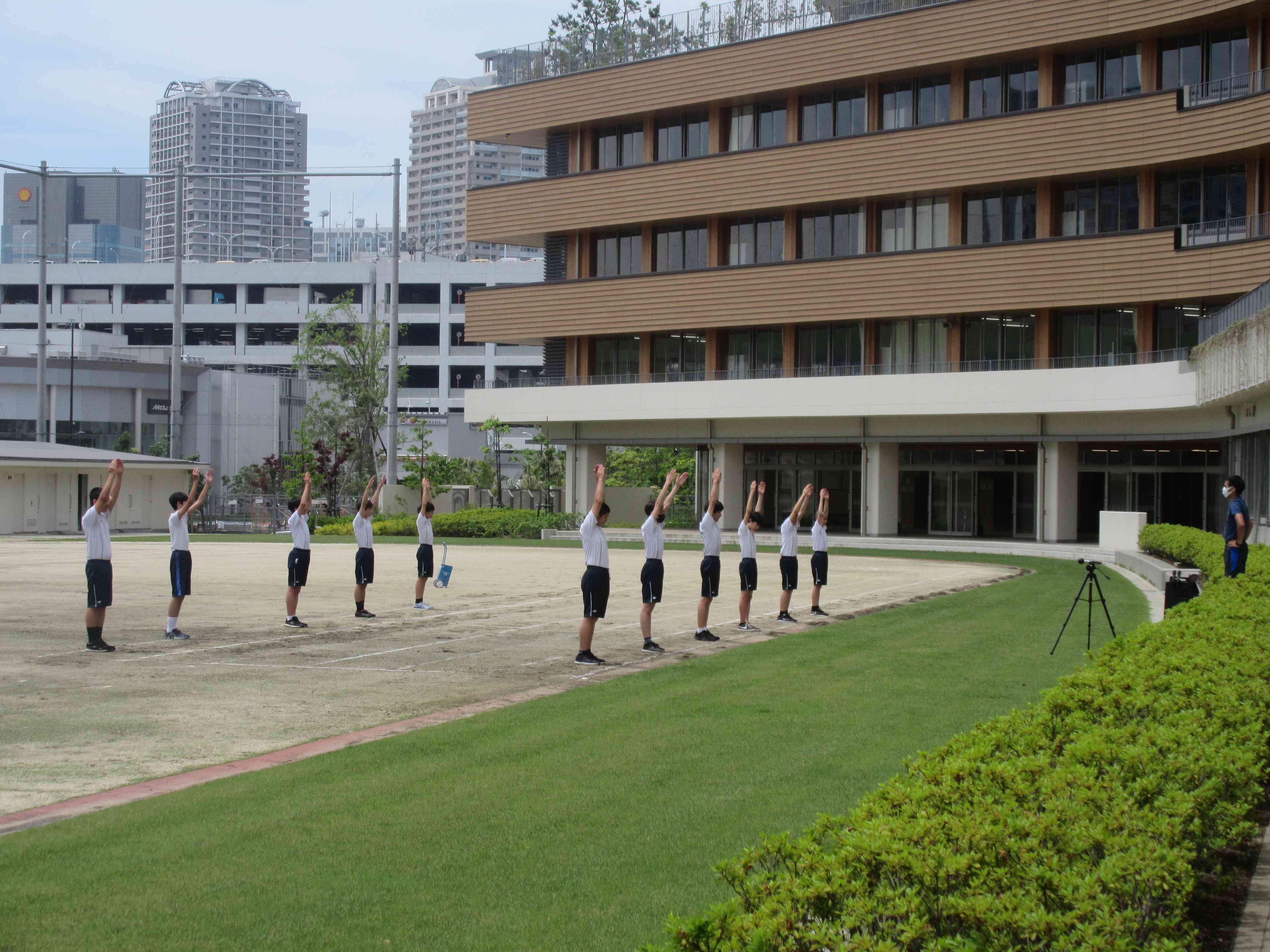 1枚目:体育館体育(前期課程) 体育館の窓を全て開けて換気に努めました。児童は間隔をとるための印に合わせ運動に取り組むことができました。 2枚目:校庭体育(後期課程) 久しぶりの校庭体育。分散登校なので人数は少なめですが、ラジオ体操をしたり、思いっきりダッシュしたりと、校庭に元気な声が響き渡りました。 今後も新型コロナウイルス感染症と暑さの対策をすすめながら、こどもたちの体力向上を図ります。【添付ファイル】