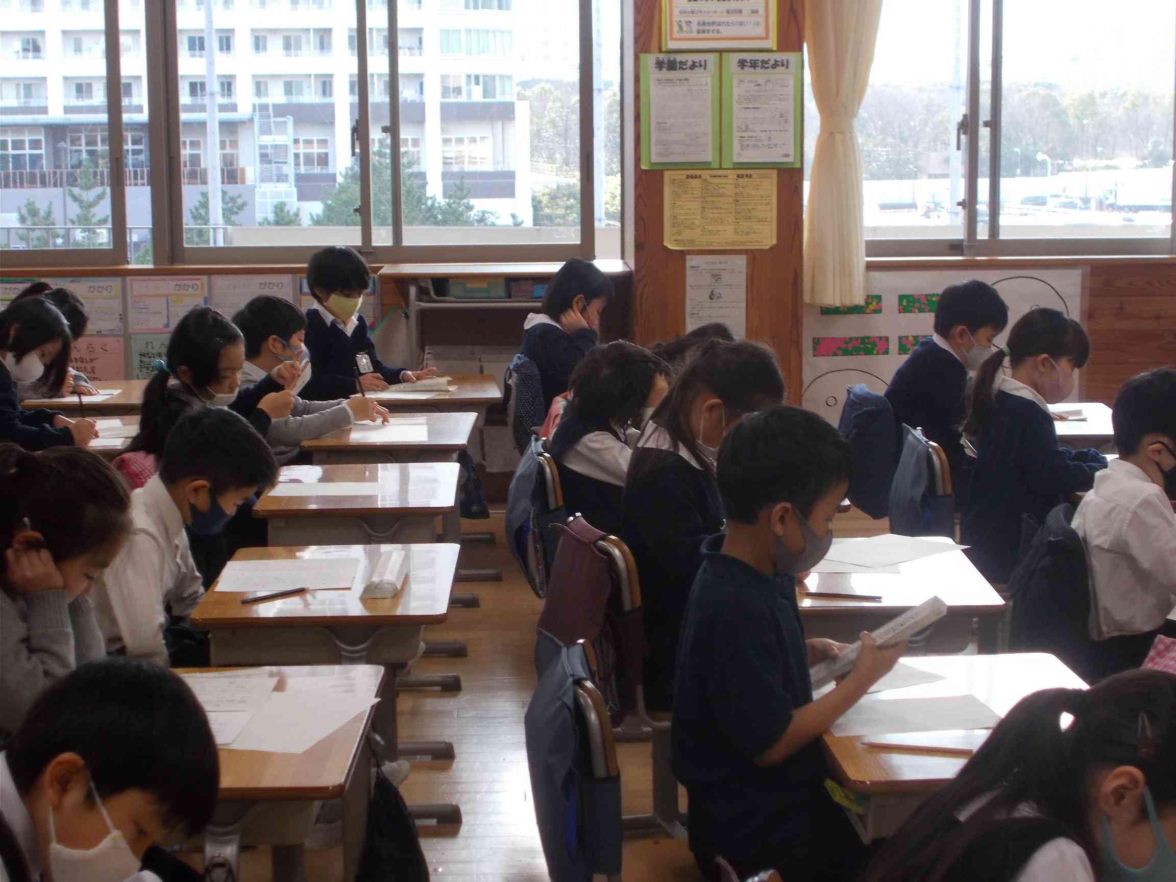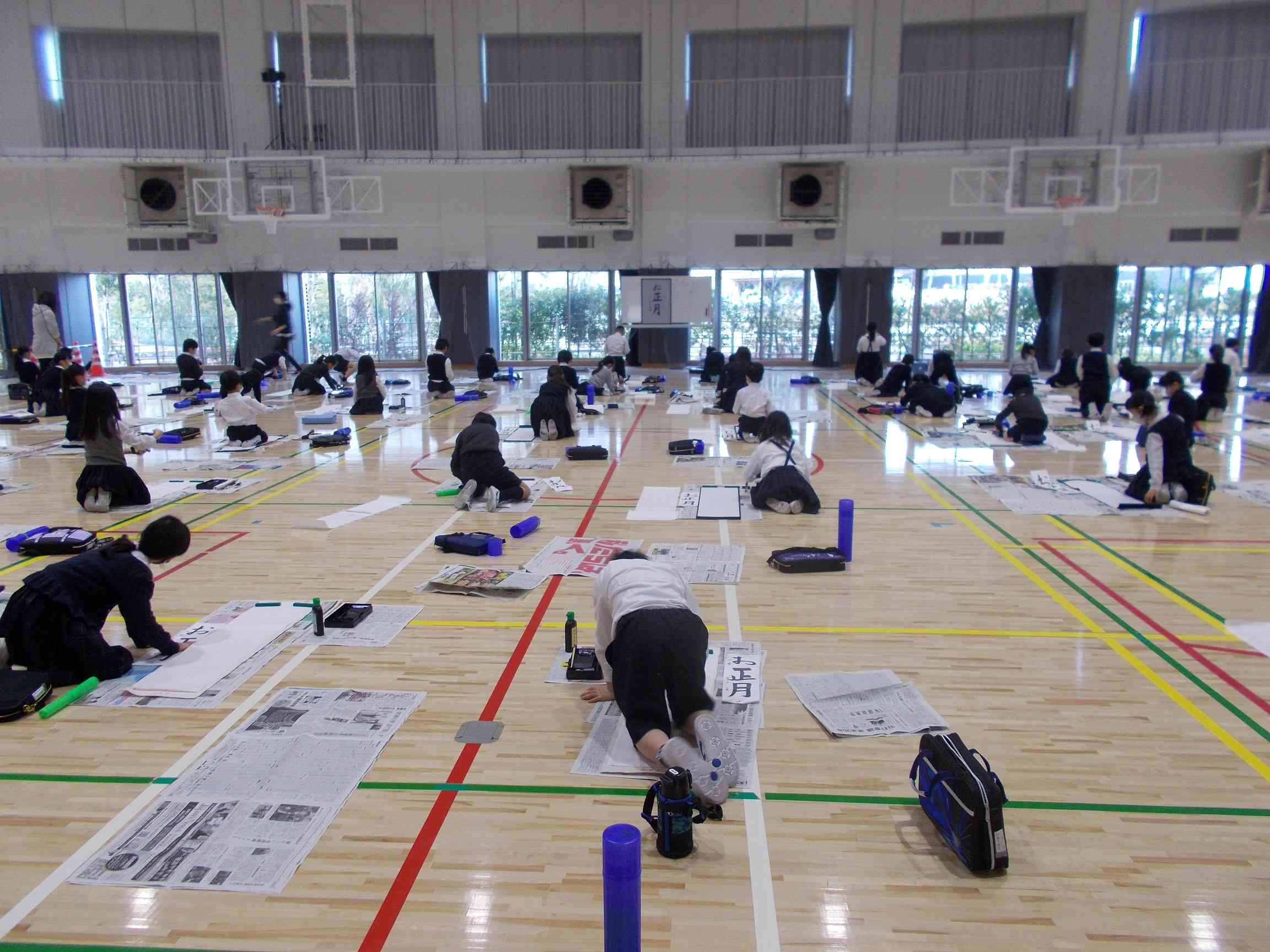 全校で席書会を行いました。昔から茶道や踊り、お琴など、年始に物事を始めると上達が早いといわれていたようです。そこで、年始に書き初めをすることで字や絵の上達を願うという意味もあるそうです。席書会では、どのクラスのこどもたちも心を整え、真剣に取り組みました。 1~2年生は鉛筆を使って、姿勢や字形、とめ、はね、はらいに気を付けて書きました。とても静寂な雰囲気の中、丁寧に取り組む様子が見られました。3年生以上は筆を使って点画の書き方や字配り、筆の運び方に気を付けて書いていました。これまでの学習を生かし、大きく堂々と書くことができました。 この席書会を通して、こどもたちも一年間での字の上達や達成感を味わっていました。これからも何かに集中して取り組む大切さや楽しさを感じ続けてほしいです。【添付ファイル】