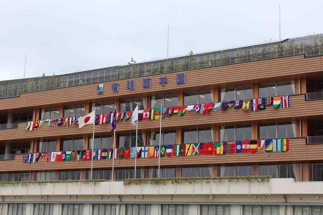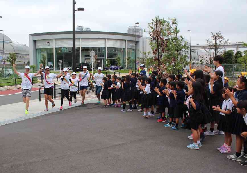 本日予定されていた「1000km縦断リレー2018」のランナーが無事に有明西学園に到着し、有明小中学校を目指して出発して行きました。青森からの思いをつないだたすきが、しっかりと次のランナーに渡されました。 本学園では、部活動に来ていた約30名の生徒ときっずクラブの約100名の児童、本校の教職員、地域の方々でお出迎え、そしてお見送りをしました。沿道でも応援していただきありがとうございました。 今回、江東区教育委員会で保有している世界の国旗の内、201か国の国旗を校舎に飾り付け、ランナーの皆さんをお迎えしました(写真は一部分のみです)。国旗を飾るのはなかなか大変な作業でしたが、「チーム有西」で用務員の皆さんを中心に飾り付けを行いました。また、別の機会にも行いたいと考えていますので、お楽しみに。【添付ファイル】