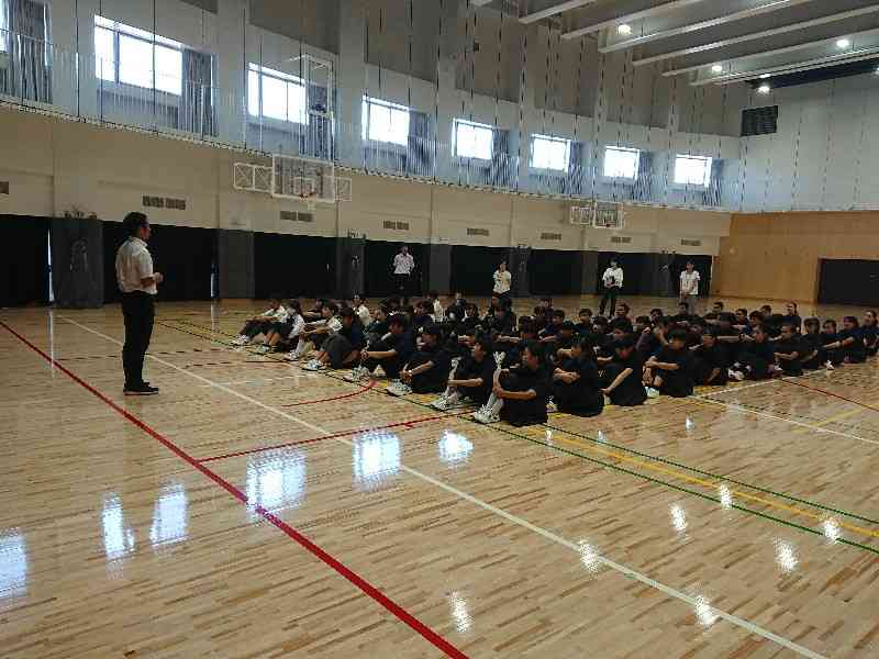 有明西学園に主役のこどもたちが帰ってきました。朝、校門の前では、元気な笑顔であいさつをしてくれる子がたくさんいて、パワーをもらいました。中には、重たい荷物にちょっと疲れ気味の様子の子もいましたが…。 江東区は前期、後期の2期制をとっていますので、夏休み明けに始業式はありません。今日は1年生から9年生まで、全員で行う「ALL」の全校朝会を行いました。前期のまとめに向けて学習の成果を発揮しようということ、夏休みに力いっぱいやったことを教えてほしいということ、そして校章の発表を行いました。(校章については別途、お知らせします) 後期課程の7年生から9年生までは、その後集会を行い、校長から「大きな行事『Ari-nishi Sports day』『Ari-nishi Festival』『開校記念式典』が続きます。後期課程のみんなが先頭に立って、有明西学園の歴史を創っていきましょう」と話をしました。生徒たちはやる気にあふれた表情で話を聞いてくれました。活躍を期待しています!(写真は、その集会の様子です) 夏休みが明けたばかりの各教室では、「夏休みの思い出のスピーチ」をしたり、作品を飾ったりする様子も見られましたが、どの教室でも早速学習がスタートしました。長い休み明けとは思えないほど、しっかりと学習に取り組む様子に感心しました。 明日から給食も始まります。有明西学園「はじめの一歩」のセカンドステージをこどもたちと力いっぱい歩んでいきます。【添付ファイル】
