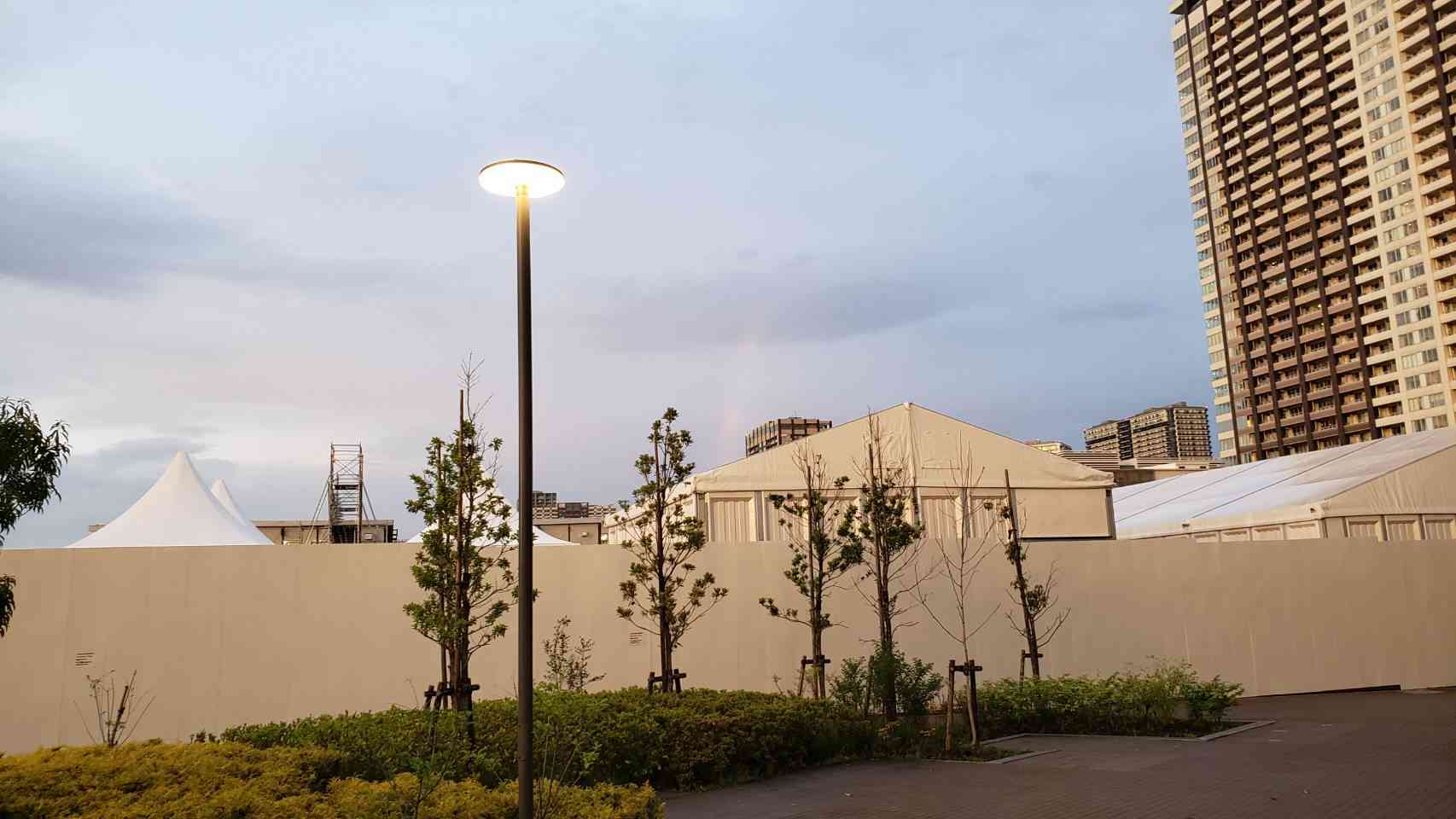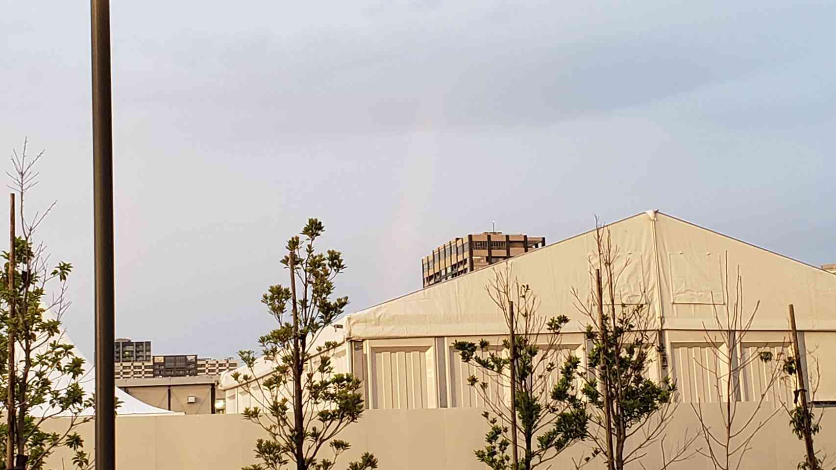 昨日は雨が降ったりやんだりの一日でした。 夕方、東の空を見上げると、きれいな虹が一瞬見えました。消えかかったところをすかさず撮影しました。 この写真に虹は見えますか?