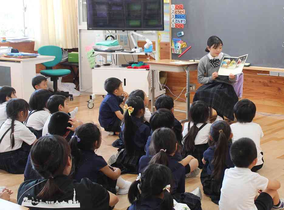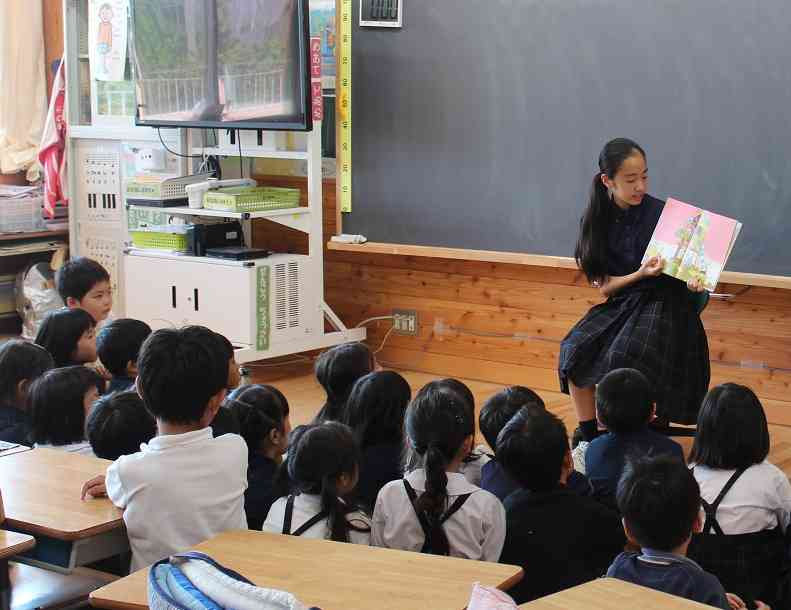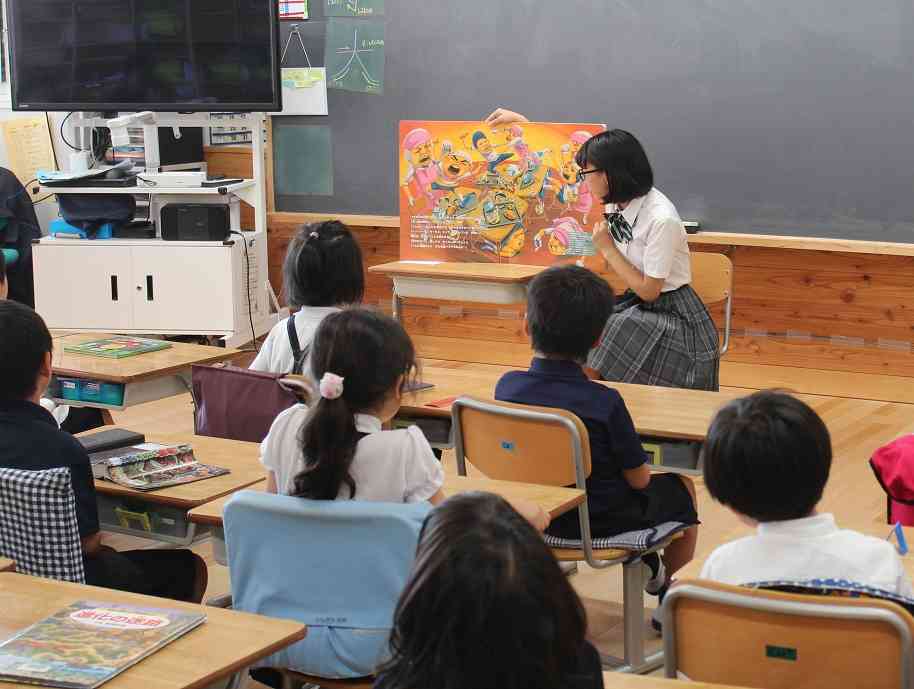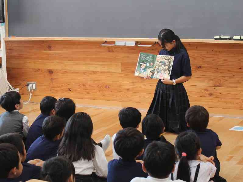 本日の昼読書の時間に、後期課程の図書委員の生徒による読み聞かせが1年生の教室でありました。後期課程の生徒たちはしっかりと選書・練習をしてきただけのことはあります。なかなか上手です。1年生もお姉さんの読み聞かせに引き込まれていました。最後には「また来てね~」の声が上がっていました。図書委員の生徒たちは、1年生のこどもたちが、今日紹介した本を自分でも読めるように、メッセージを添えて図書室にコーナーを作ってくれるようです。さすが、有明西学園の後期課程の生徒たち、Good job!今後は、前期課程5・6年生の図書委員も読み聞かせに参加します。 <本日のラインナップ> 1-A 「しゃっくりがいこつ」作:マージェリー・カイラー 1-B 「11ぴきのねことこぶた」作:馬場のぼる 1-C 「給食番長」作:よしながこうたく 1-D 「サンタクロースの11かげつ」作:マイク・リース 1-E 「いちねんせいになったから」作:くすのきしげのり【添付ファイル】