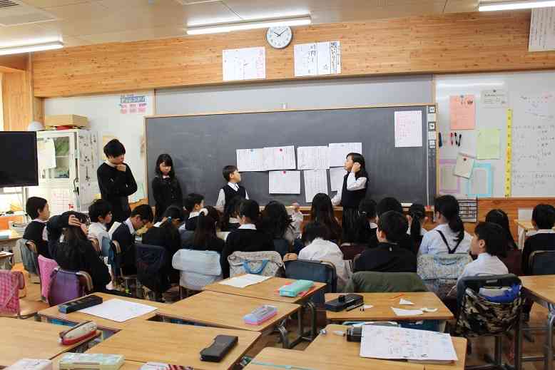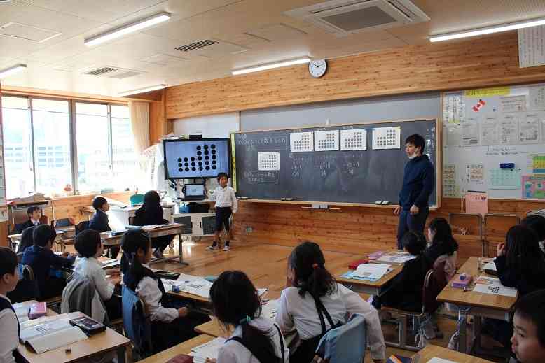 有明西学園では、「有西授業スタイル」として授業を実施する際に4つの視点を大切にしています。これは1年生から9年生まで一貫して取り組んでいます。 (1)一人一人の個性や能力を大切にした授業 (2)児童・生徒が「主体的」に取り組む授業 (3)「考える」「表現する」ことを大切にした授業 (4)ICT機器を積極的に活用した授業 特に、児童・生徒が主体的に考え、それを表現し、話し合う授業は、これからの時代を生きていくためにはとても重要であると考えています。授業の様子をちょっとのぞいてみました。 ★2年生の算数の授業では、「かけ算」の学習をしていました。「(図を見せて)いくつかチョコレートを食べてしまって、残りがこれだけあります。かけ算を使って、いくつ残っているか考えてみよう!」児童は、たくさんの考えを発表します。分けて考えるやり方もいくつもありますし、全体から引く考え方や移動させる考え方まで。こどもたちはその都度「なるほど!」「すご~い!」 ★4年生の国語では、説明文の段落構成について、班ごとに話し合ったことを発表し考えを深めていました。それぞれがしっかりと自分の意見をもっているので、話し合いも深まります。話し合い自体も児童が主体的に進めていました。 ★7年生の国語では「竹取物語」の学習をしています。昨日は、デジタル教科書を使って、レベルを上げながら暗唱に挑戦していました。今日は、場面の絵を見ながら話し合いです。どこでどんなことをしている人がいるのか、先生が生徒の意見をインタラクティブボードに記入していきます。活発な意見交換ができました。【添付ファイル】
