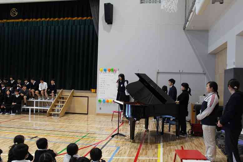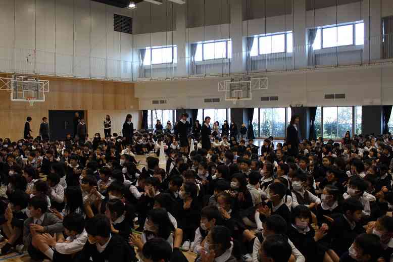 4月の開校当初から、前期課程のリーダーとして委員会活動やクラブ活動、縦割り班のスマイル・プロジェクト等で活躍してくれた6年生に感謝の気持ちを伝える集会を開催しました。 集会委員会が考えた6年生クイズや5年生の代表の言葉、1~5年生の歌等があり、最後に6年生の合奏「風になりたい」の披露がありました。前期課程修了まであと少し、最後まで力いっぱい頑張って、後期課程、中学校で活躍してくれることを期待しています。【添付ファイル】