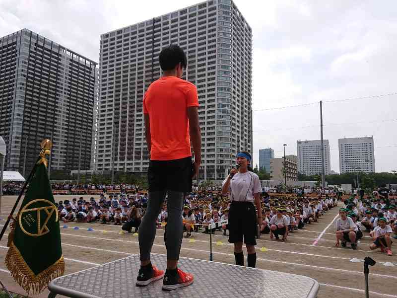 少し曇り空ではありますが、本日、第2回Ari-nishi Sports dayを開催することができました。開会式では、Ari-nishi Familyで、東京オリンピック出場を目指す、前野景選手にも参加していただき、こどもたちにパワーを送ってもらいました。 児童生徒の皆さん、さあ、「力いっぱい~Do my best!~」で最後まで頑張りましょう!