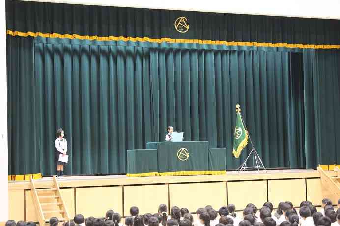 今日で、前期が終わりました。1年生から9年生が第二体育館に集まり終業式を行いました。 校長式辞の後、1・3・5年生の代表の児童が、前期を振り返って、言葉を述べました。行事や経験を通して学んだこと、成長したこと等について、どの児童もとても立派に発表することができました。最後に、校歌を歌い、式は終了しました。来週には、後期の始業式があります。 ※台風19号が近付いています。3連休は、安全に気を付けてお過ごしください。【添付ファイル】