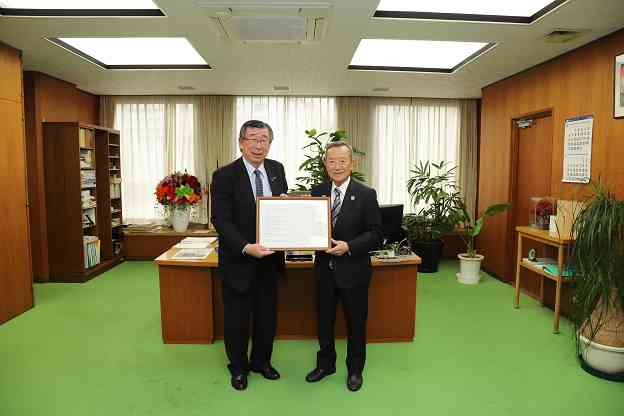 昨日(10/17)、本学園の8年生が移動教室、植樹(「有明西学園ふるさとの森づくり」)でお世話になっている長野県の長和町の羽田町長が、辰野教育長と共に、有明西学園を訪問してくださいました。 8年生の生徒たちとは5か月ぶりの再会でした。Festivalに向けて合唱の練習をしているところを見ていただき、その後お話をしてくださいました。「台風が来ましたが、皆さんの植樹したカラマツは大丈夫でした。」と話してくださり、8年生からも「台風の被害を心配しています。僕たちにできることがあったら、おっしゃってください。」とお伝えしました。羽田町長は、長野県のカラマツや全国の様々な木がふんだんに使われている校舎にとても感心されていました。 今日(10/18)、羽田町長は、江東区役所で山﨑区長と面会され、本学園のこれからの森づくりのことや体験活動について等、様々なお話をされました。最後に、「有明西学園ふるさとの森づくり」の協定書を持って記念撮影をされました。 羽田町長、そして長和町の皆様、これからもどうぞよろしくお願いいたします。【添付ファイル】