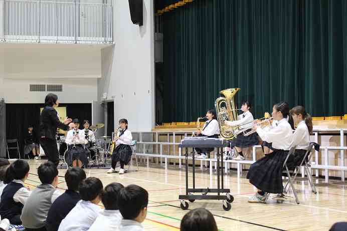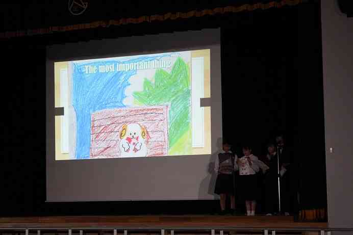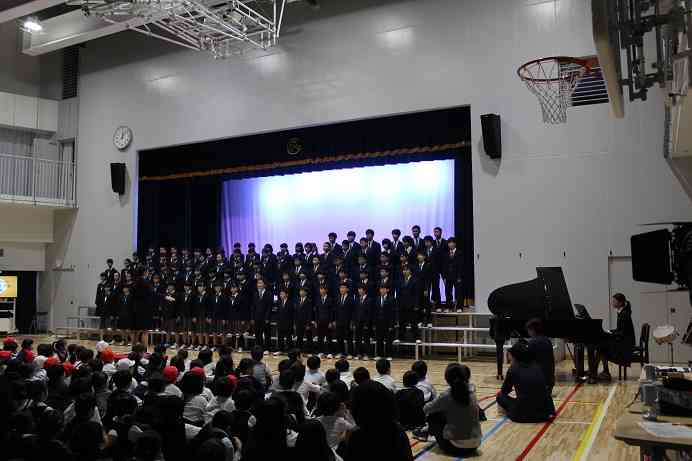 舞台発表の後半は、放送・文芸部、吹奏楽部、英語部、そしてカナダ短期留学の発表、そして大トリは、後期課程生徒全員による合唱です。 前期課程の児童たちは、先輩の姿を見て憧れをもち、それを超えていこうと頑張っていきます。後期課程の合唱「正解」には、特に9年生の熱い思いがこもっています。ご期待ください。