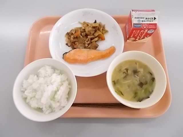 22日(水)ご飯 鮭の西京焼き じゃがいものきんぴら炒め わかたま汁