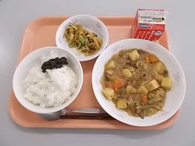 11日(水)ごはん のりの佃煮 じゃがいものそぼろ煮 小松菜の和え物